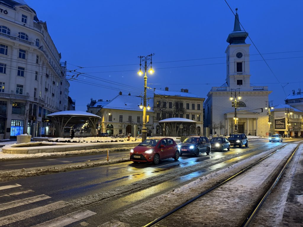 S obzirom na ćumez i tanke zidove spavao sam solidno. Budilica je otkucala u 6 i lagano sam se spremio i krenuo smrznutim ulicama Budimpešte do tramvaja koji me dovezao do autobusne stanice na Kalvin Teru odakle vozi 100E za aerodrom.