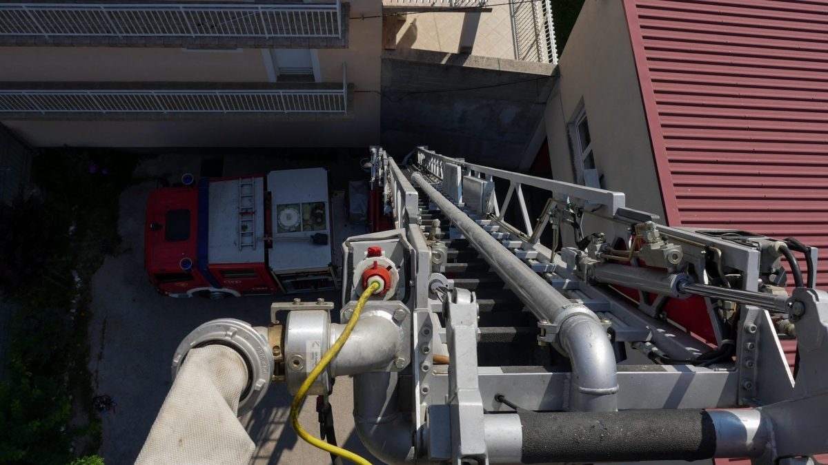 Kod vatrogasaca je od jutra bilo uzbudljivo. Demonstrirali su nam automatske ljestve, pa smo imali prilike vidjeti Knin kao nikad ranije.